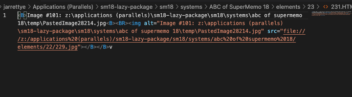这个 file:///z:/applications%20(parallels)/sm18-lazy-package/sm18/systems/abc%20of%20supermemo%2018/elements/22/229.jpg 一看就知道是绝对路径,如果移动 sm18 的位置,图片就显示不出来了。但是我的 Quicker 动作: