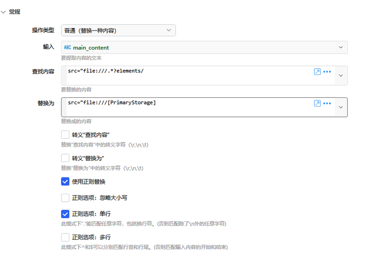 然后使用搜索替换功能(搜索 src="file:///.*?elements/,替换 src="file:///[PrimaryStorage])