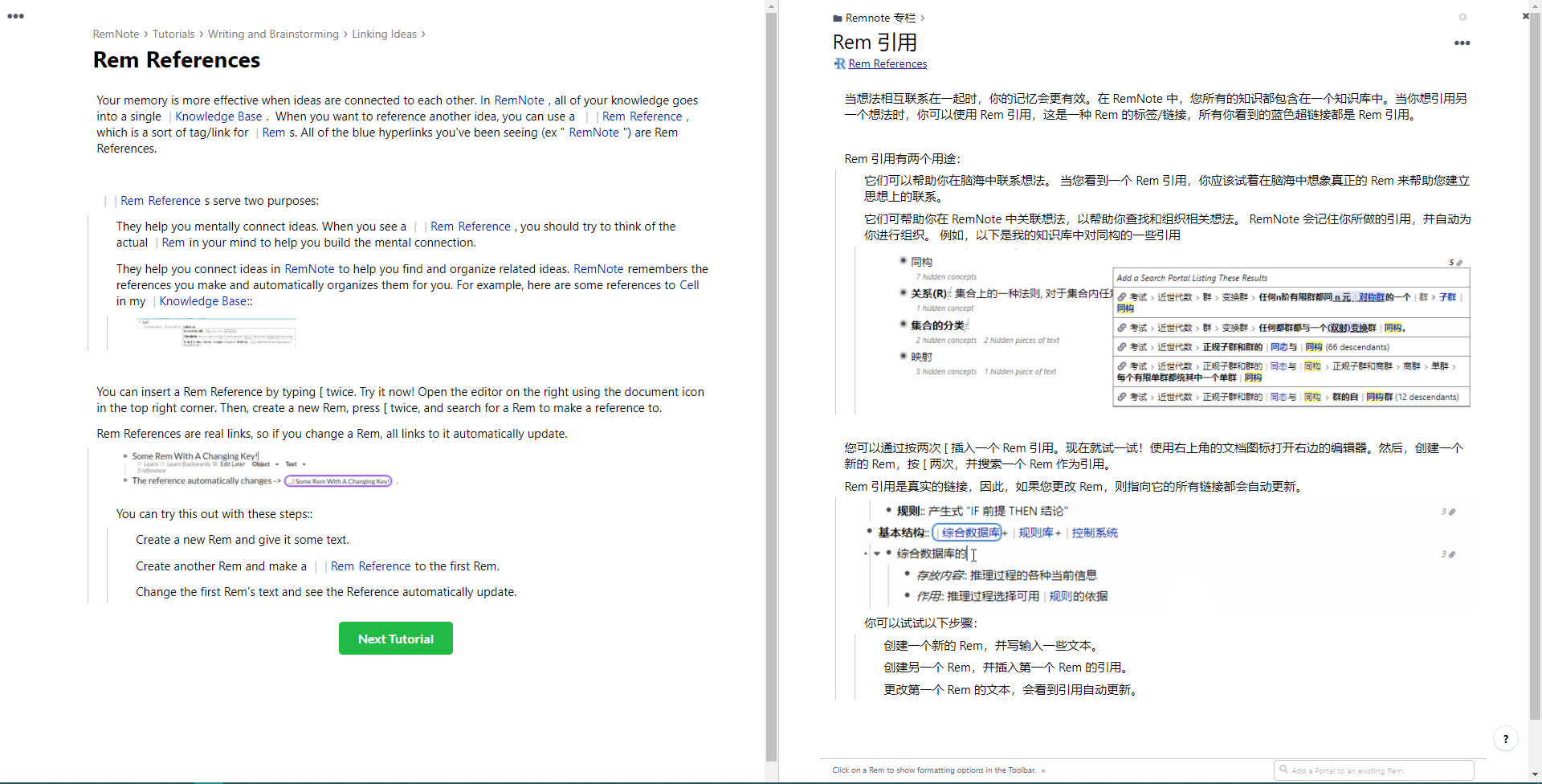 Rem 引用是真实的链接,因此,如果您更改 Rem,则指向它的所有链接都会自动更新。