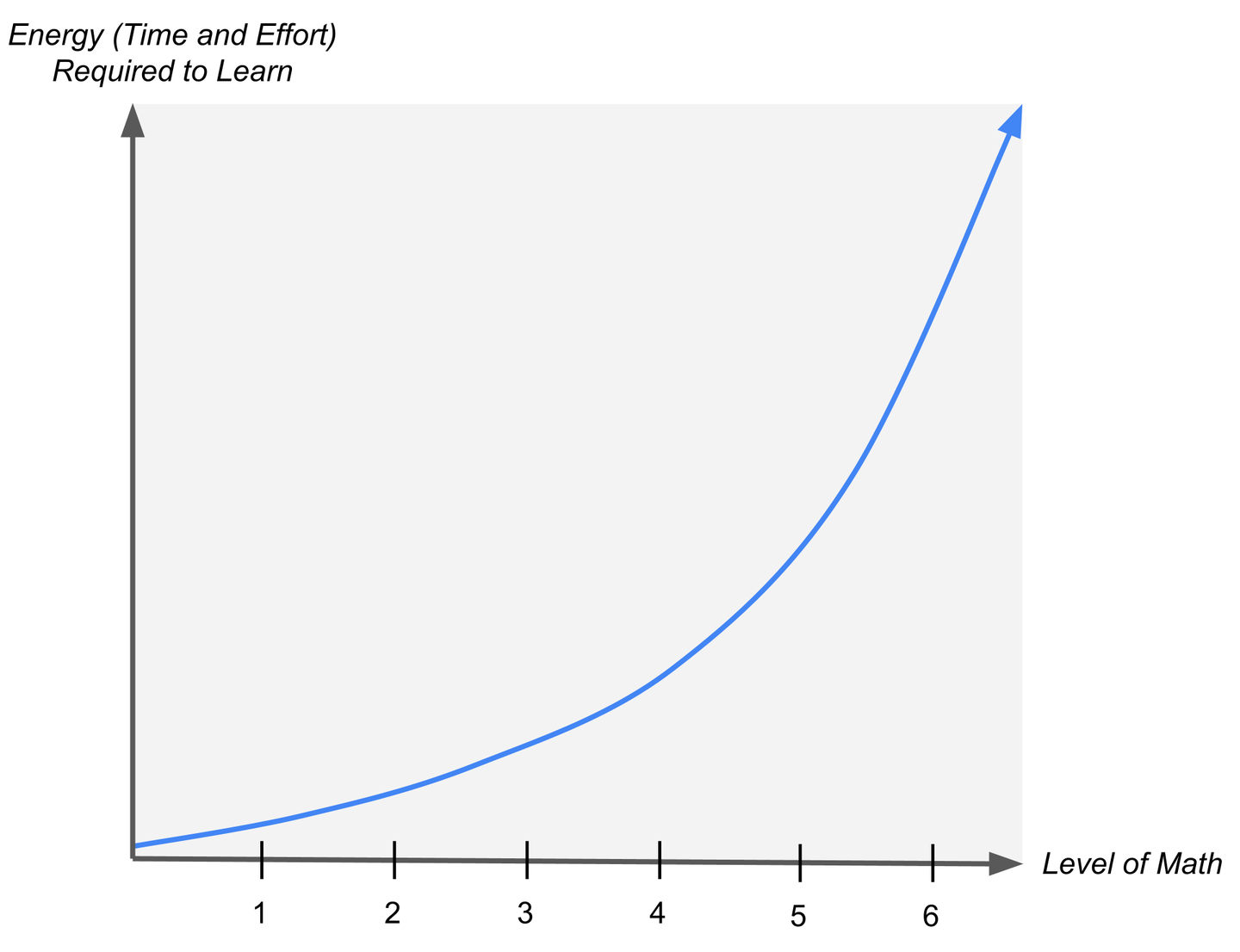 重要性:随着数学学习的深入,掌握更高等级知识所需的精力呈指数级增长。这种现象导致了一种被称为「抽象天花板」的效应。这并非是一个「硬性」的门槛,让人突然失去进一步学习数学的能力。相反,它更像是一个「软性」的临界点:在达到这个水平后,学习数学所需的时间和精力会急剧增加,以至于继续深入学习高等数学不再是一个明智的选择。 - Simonton, D. K. (2007). Talent and expertise: The empirical evidence for genetic endowment. High Ability Studies, 18(1), 83-84.