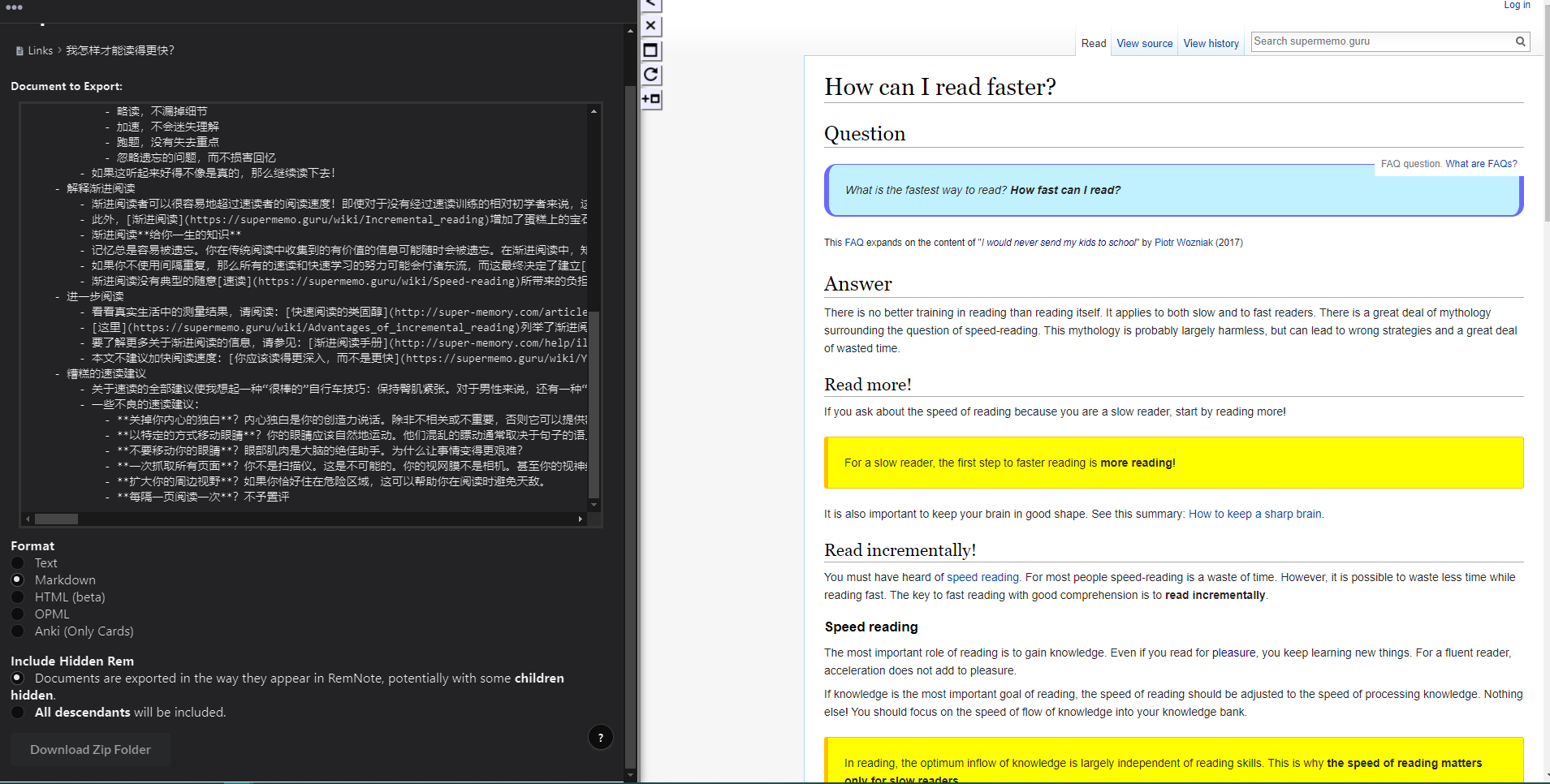 - 要了解更多关于渐进阅读的信息,请参见:渐进阅读手册