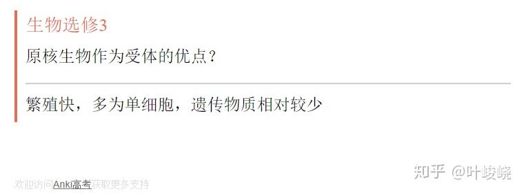 牌组分享Ankiweb 下载AnkiX高考第13期:现代生物科技|Anki生物 - AnkiWeb卡片预览制作方法课本原句和平时刷题总结制卡材料人教版生物选修三全国卷题外话学习材料很多, 不要硬背, 作为制卡参考最佳. 专栏:无 ← 返回目录