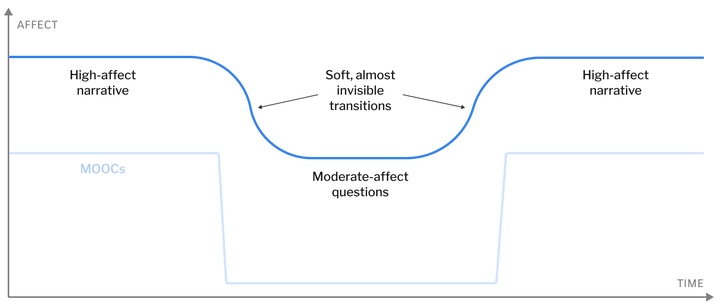 - 确保助记文章中的前几个问题是简单的:这有助于许多用户意识到他们在阅读时没有足够专注:[^15] 这是我们发布第一篇「量子国度」文章时发现的。我们预计用户可能搞不懂陌生的界面,所以我们故意把文章中的前几个问题弄得像「2+2=?」那样简单,认为这样他们就可以把注意力放在界面上。令我们惊讶的是,用户在这些问题上的表现很差,比他们在后面更难的问题上的表现还差。我们目前的假设是,当用户未能正确回答前几个问题时,就像敲响了警钟。这些问题简单到让用户发现他们在阅读时并没有全神贯注,所以后来就更小心了。