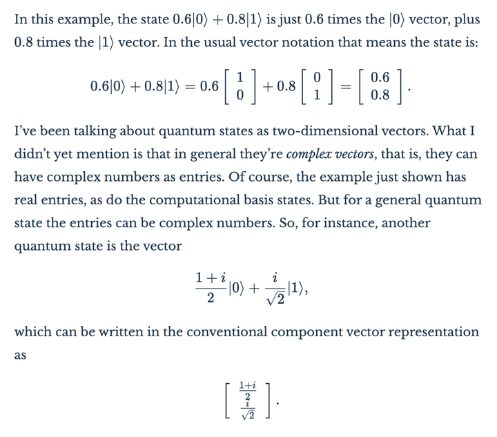 出于实验目的,我们开发了「量子国度」这个网站,旨在探索一种解释量子计算和量子力学的新方法。表面上看,量子国度和那些介绍这些主题的传统文章没什么两样——有文字,有说明,有方程。下面是一个内容摘录: