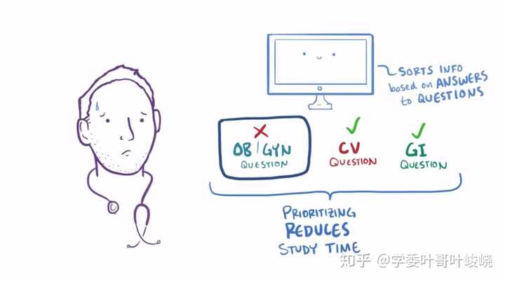 电脑中存储着基于「问-答」的信息,安排我们的复习顺序和时机,当我们答错的时候,算法会自动把对应内容优先重复出现。而完整答对的内容将降低出现频率,节省我们的时间。