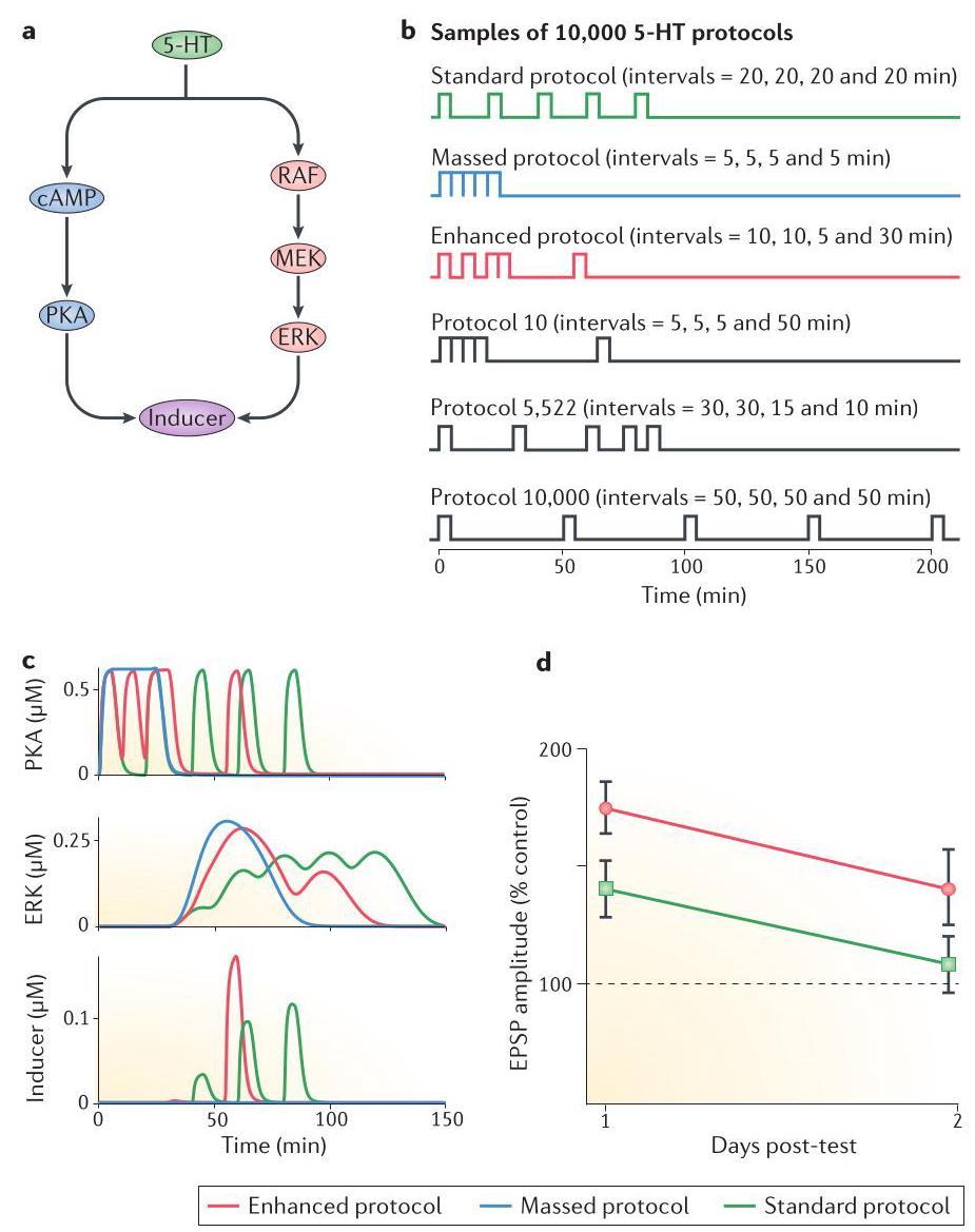This study found that computational models describing long-term synaptic strengthening can successfully predict optimal spaced training protocols, with irregular inter-trial intervals, that enhance learning. - Bhalla, U. S. & Iyengar, R. Emergent properties of networks of biological signaling pathways. Science 283, 381-387 (1999).