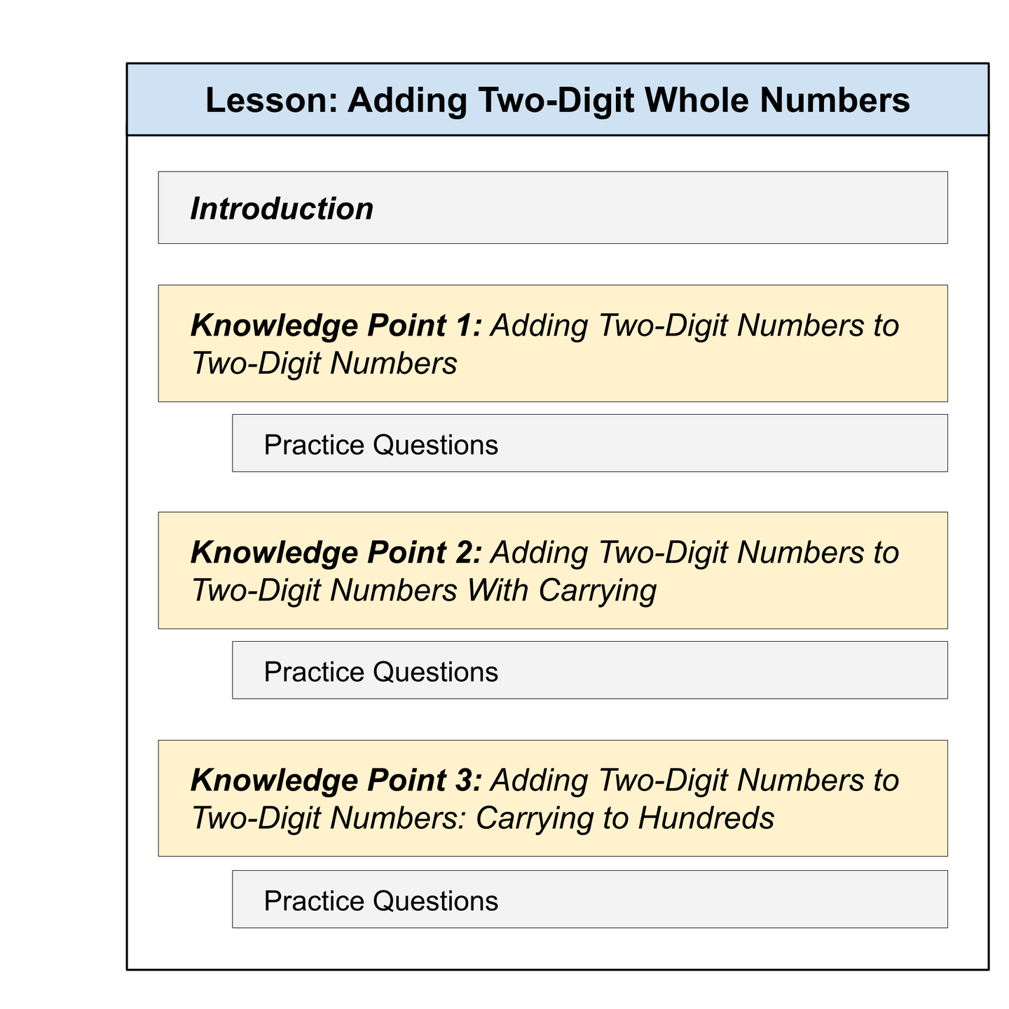 举个例子,一本典型的微积分教科书可能包含 100 个学习台阶(10 章,每章 10 节)。而在我们的微积分课程中,我们设置了约 1000 个学习台阶(大约 300 个主题,每个主题包含 3-4 个难度递增的知识点或学习阶段)。换句话说,我们的课程内容比其他同类教材更加精细,细化的认知脚手架约为常规教材的 10 倍。