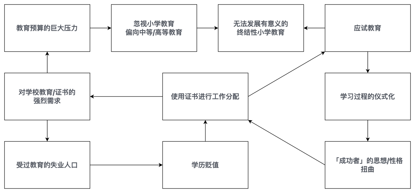 有一个因素贯穿本书讨论的几乎所有问题的核心:文凭病,证书的祸害,个人生活前景对学校成绩证书的依赖。