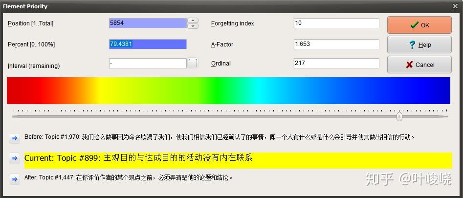 当我们感觉自己能理解困难的文章时,估算所需的时间间隔,并且使用Ctrl+J设置间隔。如果文章包含高优先级知识,那么最好还是谨慎一点并安排尽早复习。