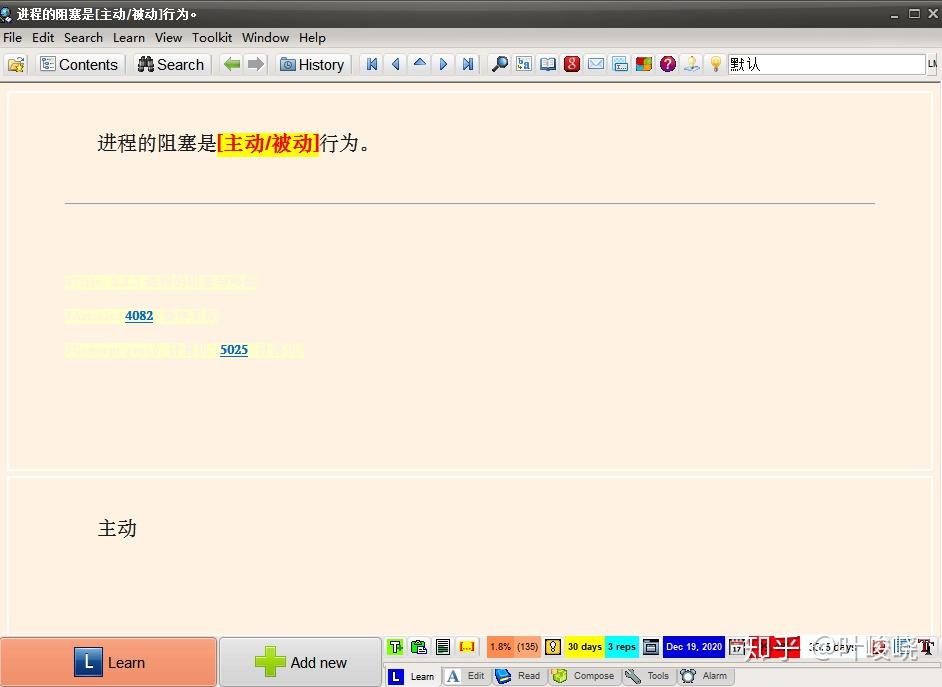 在使用渐进阅读几天后,我们可能会遇到第一张问答卡片。只需要先看正面回忆背面,然后查看答案自觉打分即可。