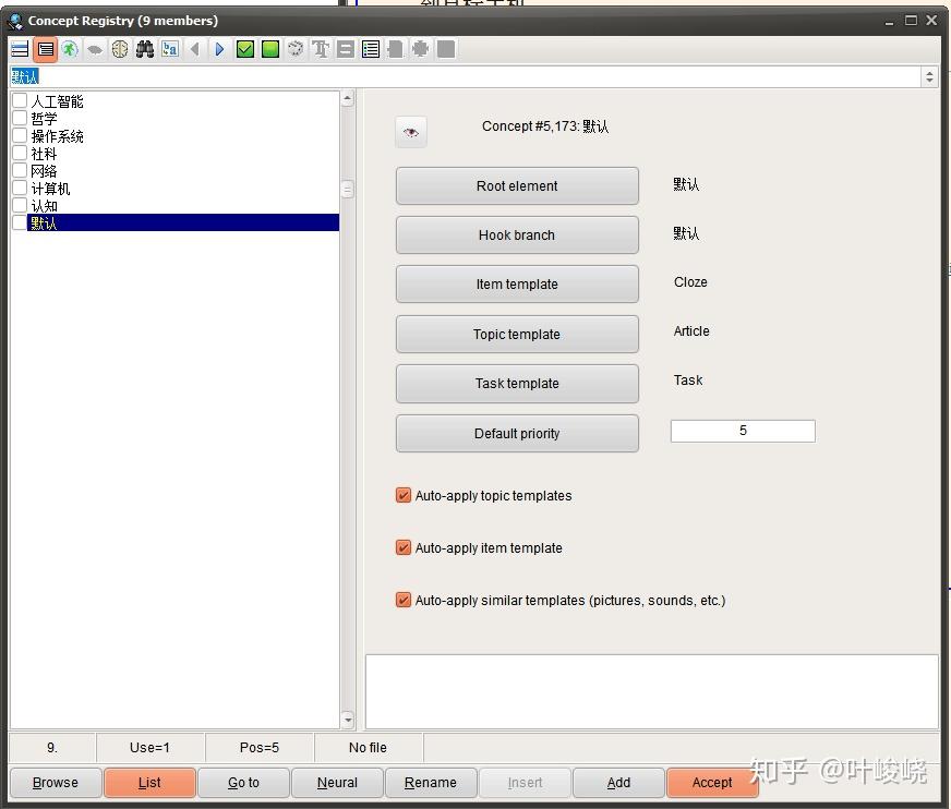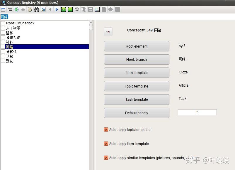 同时,概念组还可以设置对应的卡片模板和默认优先级。所有新增的卡片都会设为概念组默认的模板和优先级。