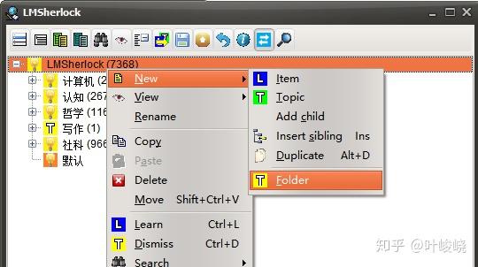 Alt + C,打开知识树的窗口。右键一个节点,建立一个文件夹(Folder)