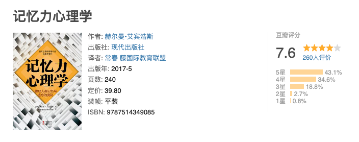 《记忆力心理学》的介绍里甚至没有提原版书的名字,这已经让我很奇怪了。没想到内容更是私货满满。自己瞎编了一个复习方法,然后冠上艾宾浩斯之名。