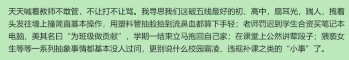 学校就像修道院,家长们是信徒,学生们是祭品。教师们作为祭司,在意识到这些以后,就开始肆无忌惮,丧失人性以显示自己的「能力」。