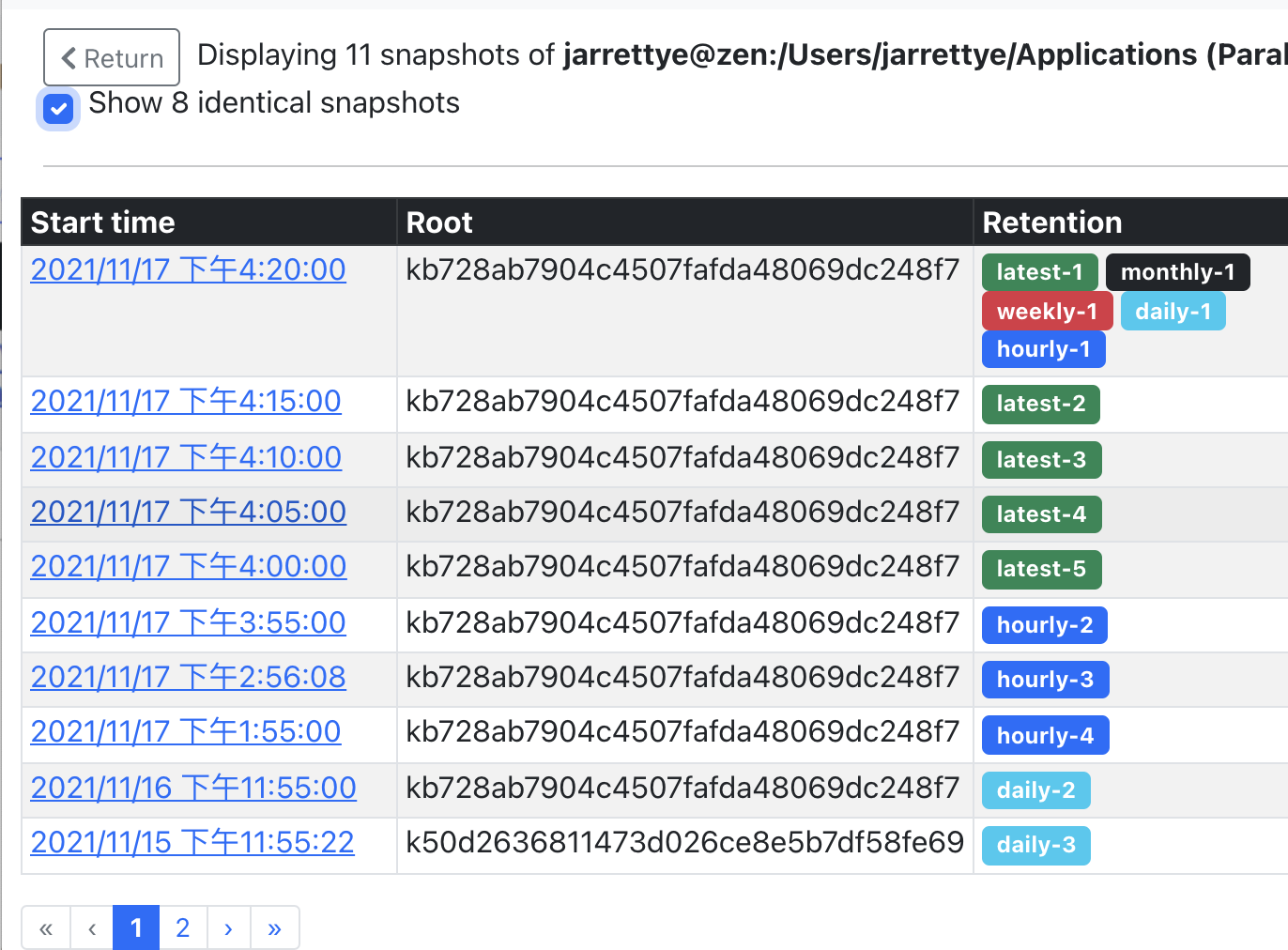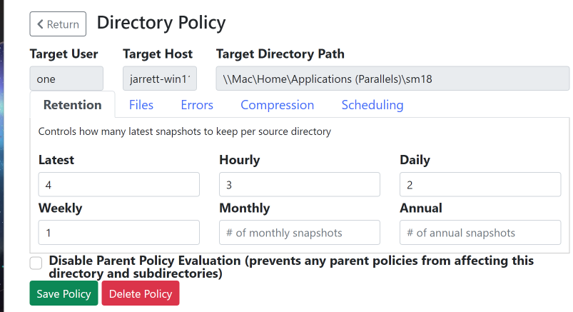 retention 这里我设置为 4 3 2 1,意思就是保持最新的 4 份,最近 3 小时的 3 份,最近两天的 2 份,最近一周的 1 份。