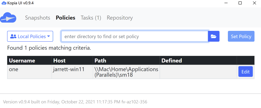 接下来我们改一下自动备份的设置,先到 Policies 点一下 edit