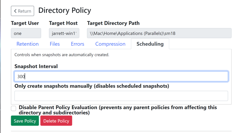 Scheduling 这边的 interval 设置为 300,就是 5 分钟备份一次。