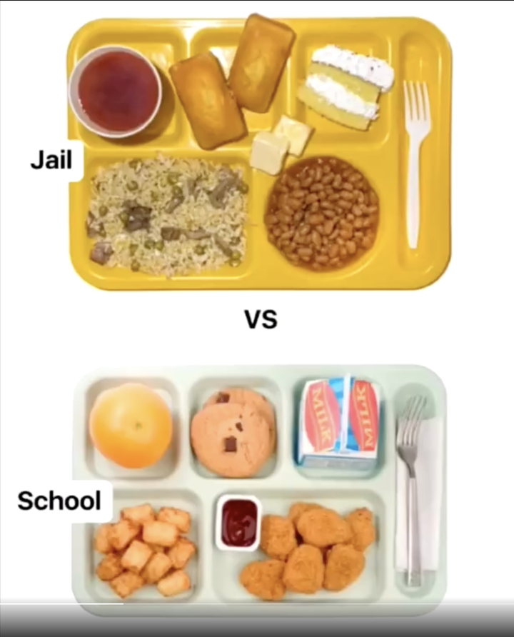 我能想到的唯一区别是:要进监狱,你必须犯罪,而把你送进学校,只需要你的年龄到了。在其他方面,学校和监狱是一样的。在这两个地方,你的自由和尊严都被剥夺了。他们会告诉你必须做什么,如果你不遵守,你就会受到惩罚。事实上,比起在成人监狱里,你在学校里必须花更多的时间,去做规定的事情,所以在这个意义上,学校比监狱更糟糕。