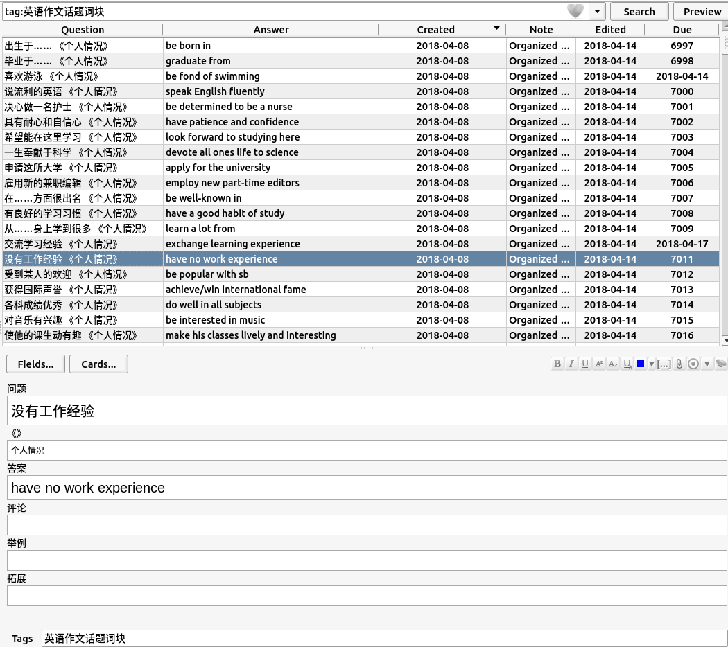 共计 659 张卡片,覆盖大部分英语作文话题,更重要的是,给同学们提供了一个可以扩展的平台,供大家借鉴。