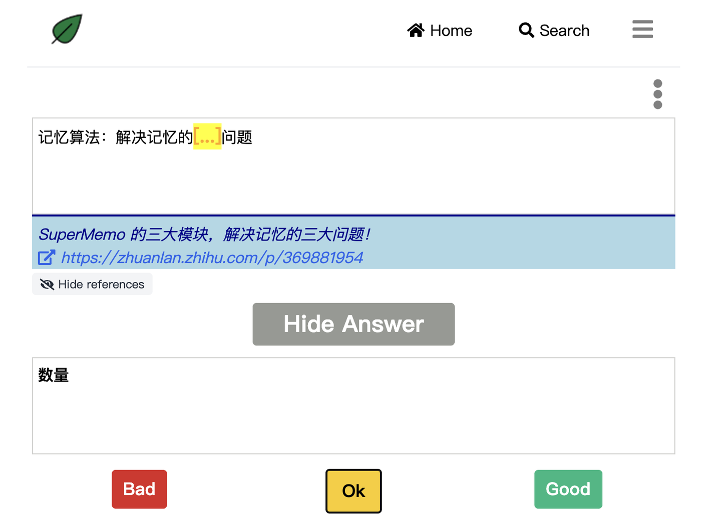 点击 show answer 显示背面,然后有 bad、ok、good 三个选项可以选择