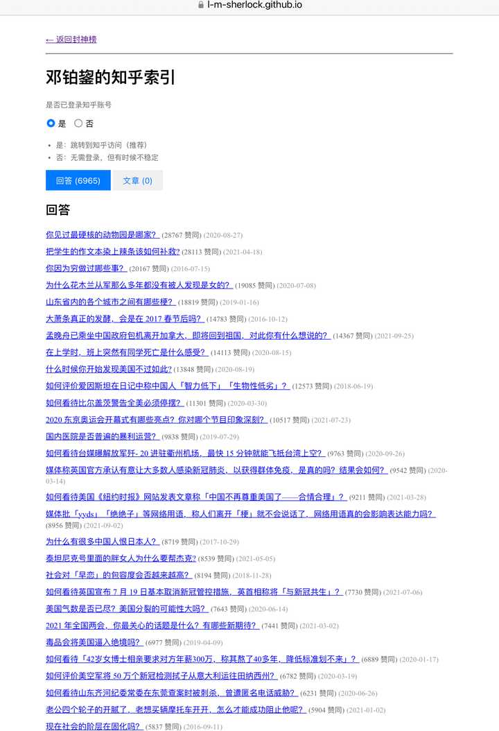 邓铂鋆的知乎索引已经按赞同量排序。