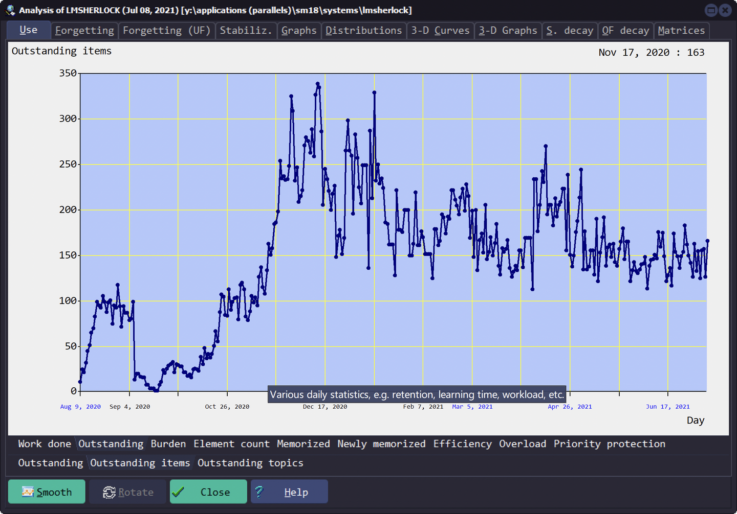 不建议 SuperMemo 新手对这些图表了解太多,原因有二: