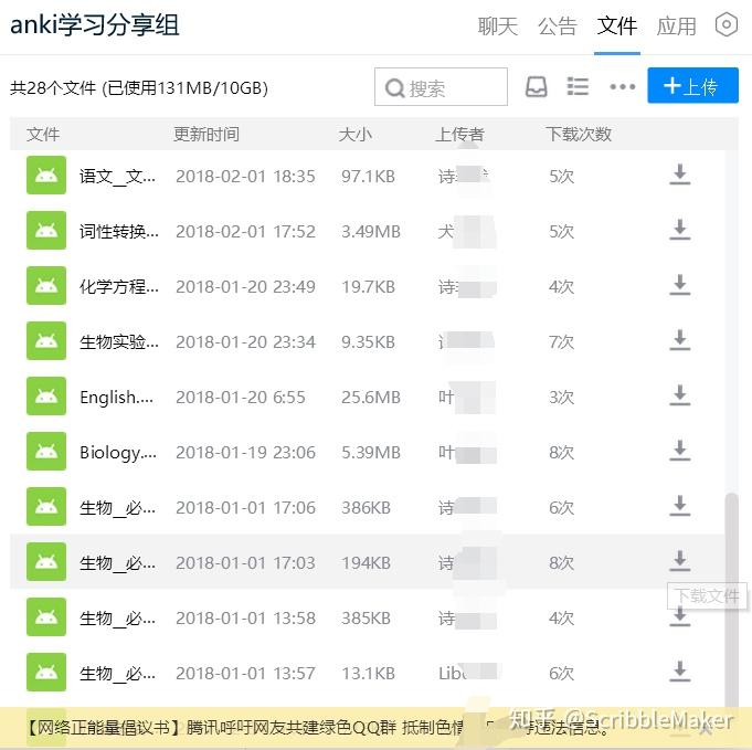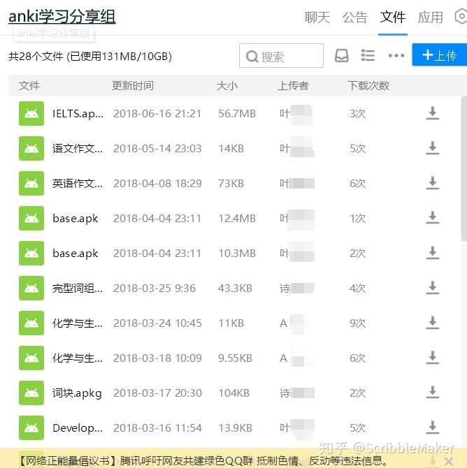 为了 Anki 学习者不再孤军奋战,我创建了 Anki 交流微信群和 QQ 群,其中 QQ 群更是有不定期的新资源分享,大家也常常交流 Anki 使用方法和发布当日学习统计,学习氛围十分浓厚。