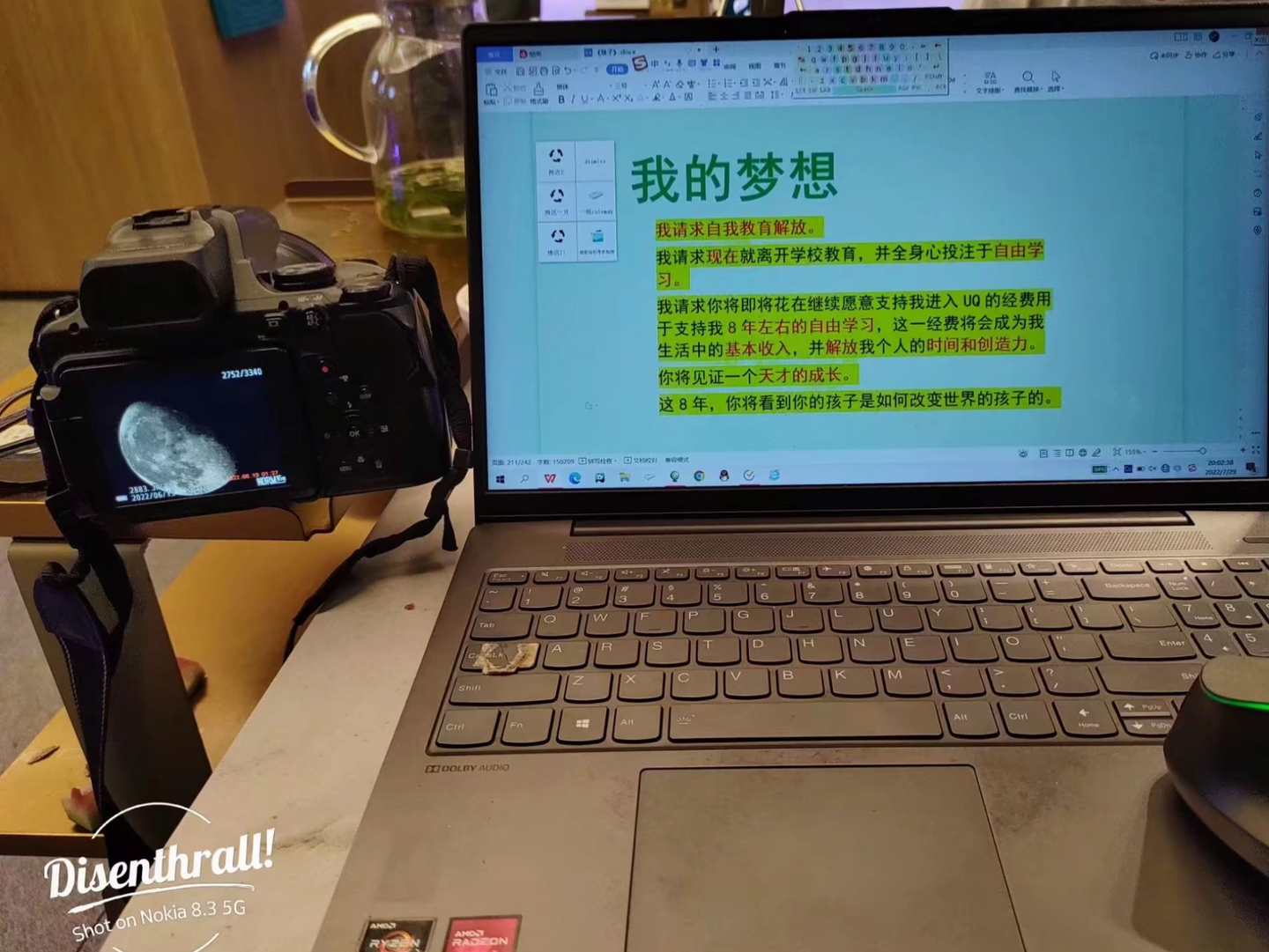 有一天,自由学习者们会站起来,立于天地之间,伴随着他们的成就和「奋斗史」高声对世界怒喝:「未来将属于真正的专家,专业知识来源于长时间的激情和探索,而不是为了一个学位而学习!我不跟随,因为我的真实,会为我证明自己!」。这一天,我仿佛已经看到了,然而,如今全民基本收入还没有普及,教育福音和技术也希望微明,我是伴随着父亲的经济支持和自己 19 年来自由学习的经验和成长才敢这样做的。现在才 2022,作为一个肄业者,对于未来可能还是迷茫的。不跟随的典范是诺基亚 N9,超前的一部 Meego 神机,无论是操作系统还是UI和外观都是沿革性的,并得到了市场的支持,但却被围,微软木马无情扼杀;那朵本该在春天盛开的花,却凋零在了上一个寒冬。我不敢确信我若干年后会喜极而泣,但我绝对不会为了现在后悔,「人类」梦想吾仍在上下而求索,但我的「自身」梦想已经实现,现在我握着我热爱的 Nokia 8.3 5G 打出了这篇 5110+ 字的文章,梦想已然实现,那就肄(yi)无忌惮,保持心愿,等待涌现,在永不放弃个体认知自由的过程中去追逐可实现的对人类的贡献!