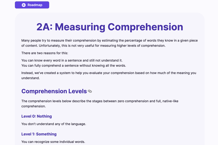 在整个 Refold 学习导航中,我们使用上述的理解等级标准来确定你何时准备好进入下一个子阶段。每个子阶段都会有自我测试,以帮助你衡量自己的理解力。这些测试解释了要使用哪种类型的内容以及如何执行测试。