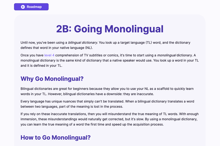 我们将上述过程称为「平易单语过渡」。这种平易的方法适用于大多数学习者。但对于某些语言来说,单语过渡太困难,需要更成体系的方法。