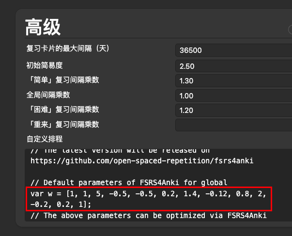 第五步:用优化后的参数替换 FSRS4Anki 中的默认参数