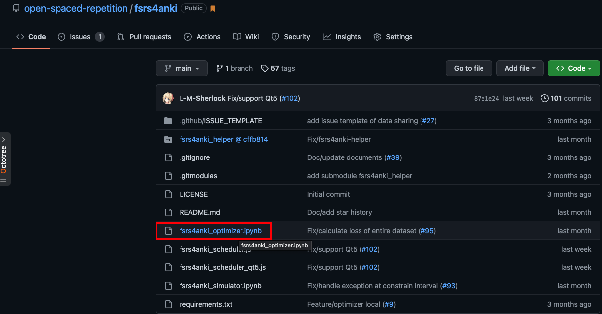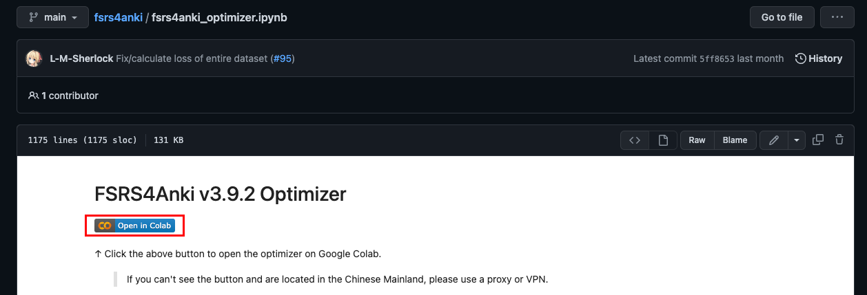fsrs4anki 仓库 -> fsrs4anki_optimizer.ipynb -> Open in Colab