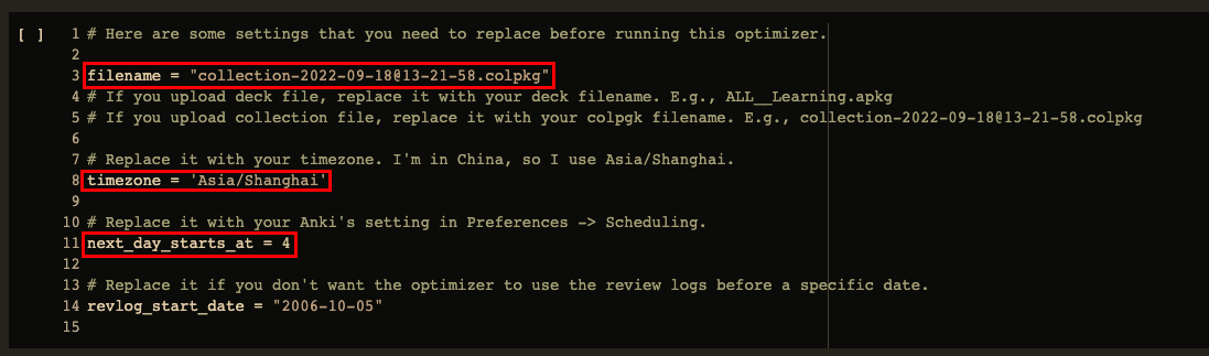 第三步:在优化器中填入你的 Anki 设置
