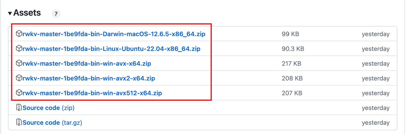 rwkv.cpp 的开发者已经预编译了不同平台上的依赖库,可以在这里下载:https://github.com/saharNooby/rwkv.cpp/releases