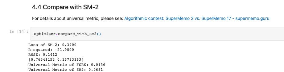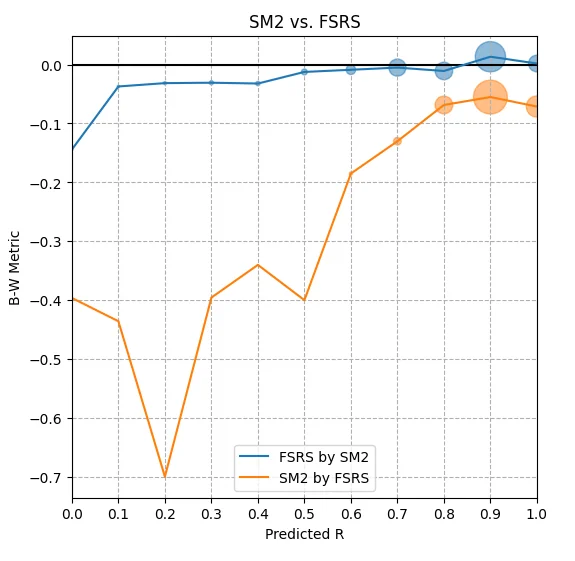 - 增加了和 SM-2 算法的对比模块,在我自己的数据集上,FSRS 的误差只有 SM-2 的 20%。