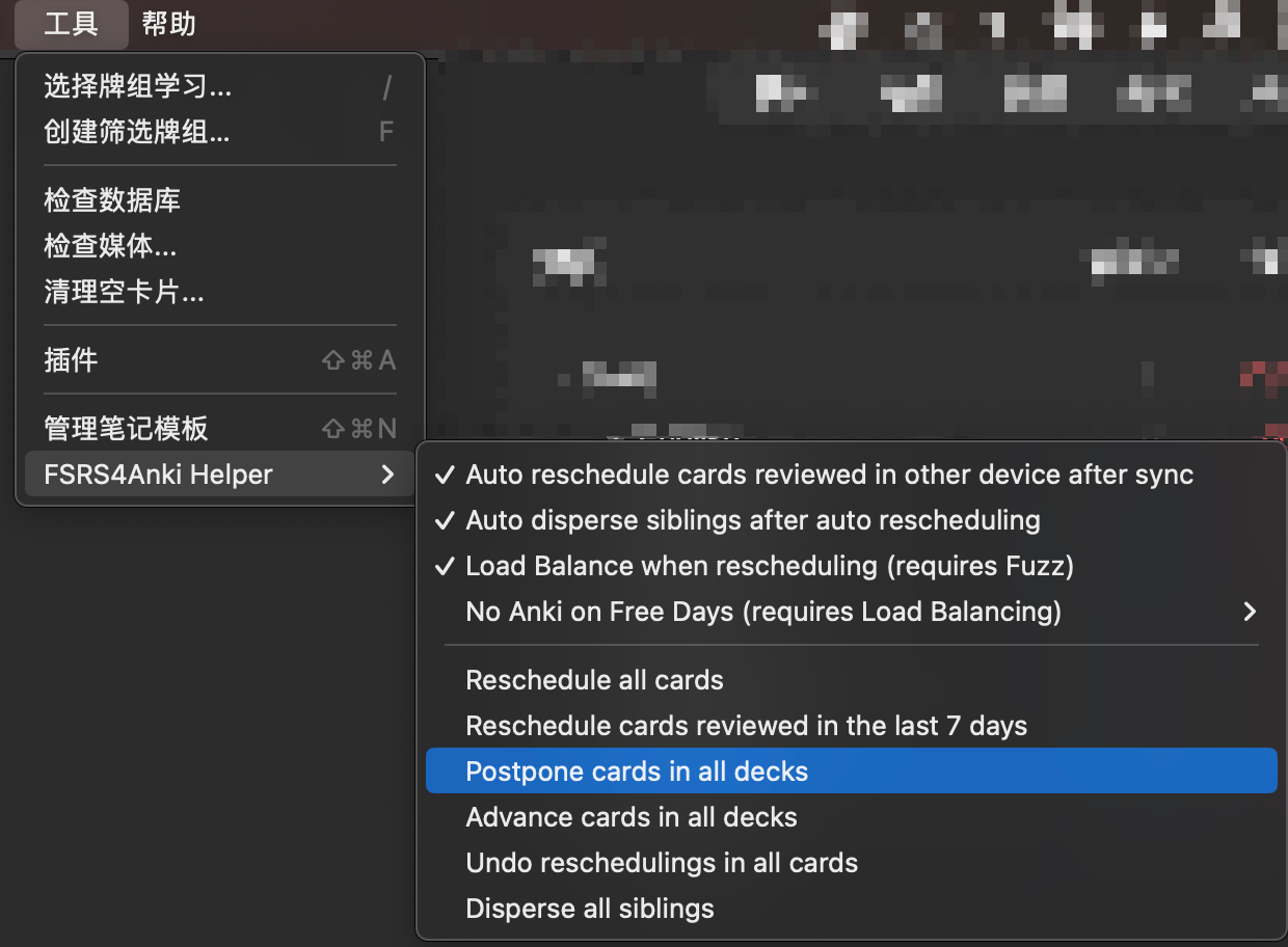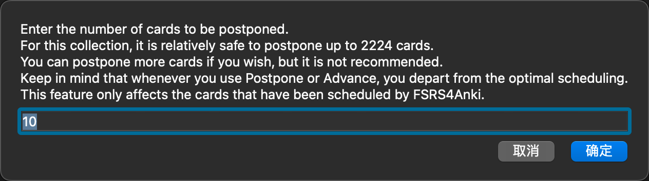 这两个功能很相似,放一起说。你可以设置提前/推迟的卡片数量,Helper 插件将按照相对提前/推迟顺序排序,然后进行提前/推迟,确保在满足你设置的卡片数量的同时,最小化对原有复习安排的偏离。