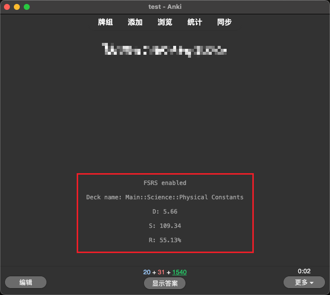 这表示你的 FSRS 已经正常运行了。然后你可以再把代码改回去,就不会显示这个信息了。