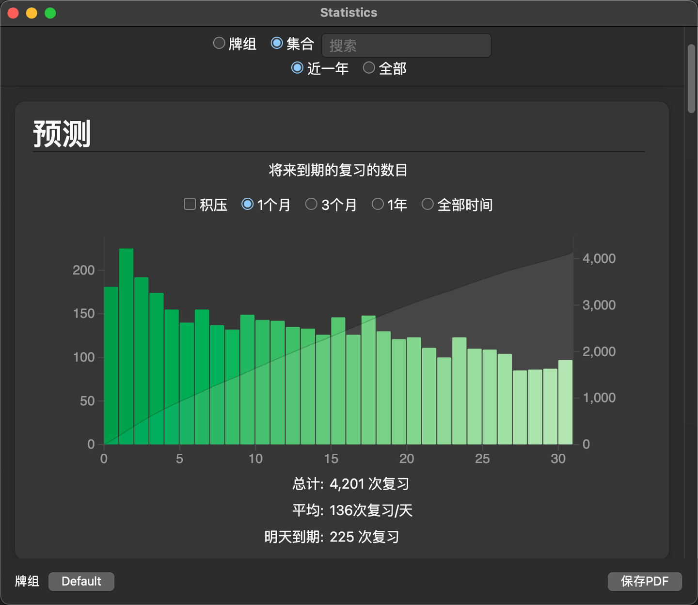 按住 Shift 键,同时点击「统计」,即可进入旧版的 Anki 统计界面。