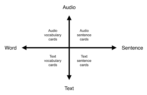 这四种卡片格式各有优缺点。建议你每种都试试,以了解各自的优势。最终,你可能会选用一到两种最适合你的格式,或者继续使用全部四种。你也可能发现,在语言学习的不同阶段,某些格式或多或少会更有用。