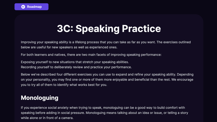 下面我们介绍了四种不同的练习,你可以用它们来拓展和完善你的口语能力。根据你的个性,你可能会发现其中一种或多种练习比其他的更有趣、更有益。我们鼓励你尝试所有练习,以找到最适合你的方式。