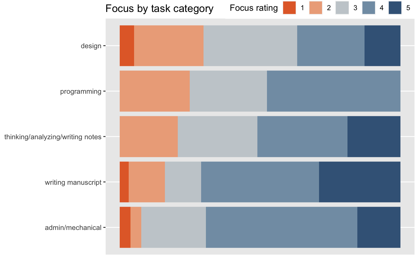 数据还显示了一个符合预期的现象:某些类型的任务比其他任务更容易专注: