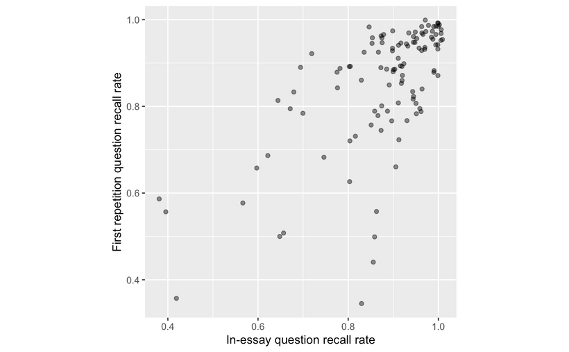 这些数据使得反事实的说法显得更加明显。在没有任何支持的情况下,难以掌握的细节很可能会被遗忘。对于那些在材料上遇到困难的读者,即使是「简单」的卡片,也至少需要文章内的练习才能保持可靠的记忆。