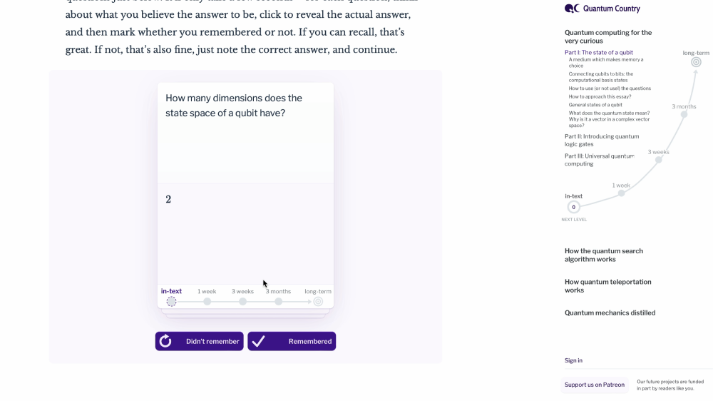 我的合作者 Michael Nielsen 和我创建了一本量子计算入门书《量子国度》,就是为了探索这个想法。这本书可以在网上免费阅读。如果你访问 quantum.country,你会看到乍一看像一本普通的书。