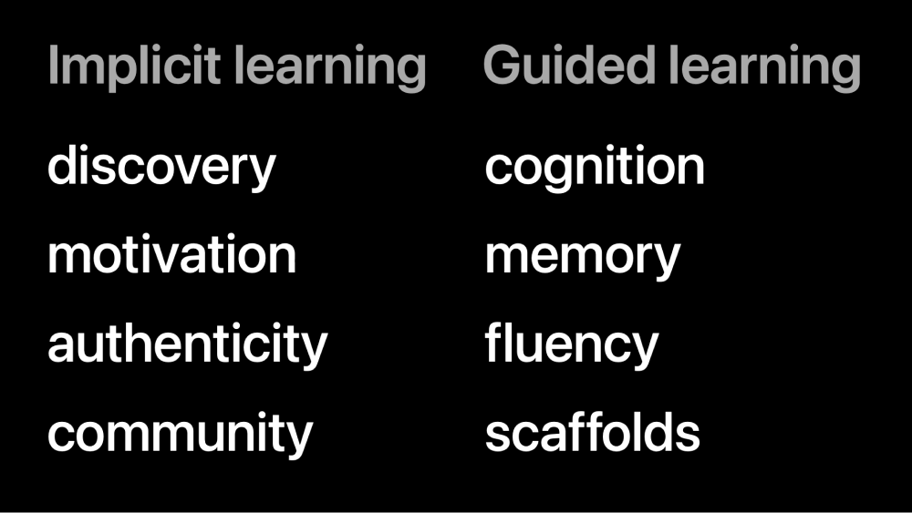 你希望全身心投入,并且希望学习真正奏效。为了实现这一点,我们需要在你的真实项目中融入必要的指导和支持,借鉴认知心理学的最佳理念。而对于那些需要更专注的外显学习(explicit learning)体验的内容,你希望这些体验完全服务于你的实际目标。