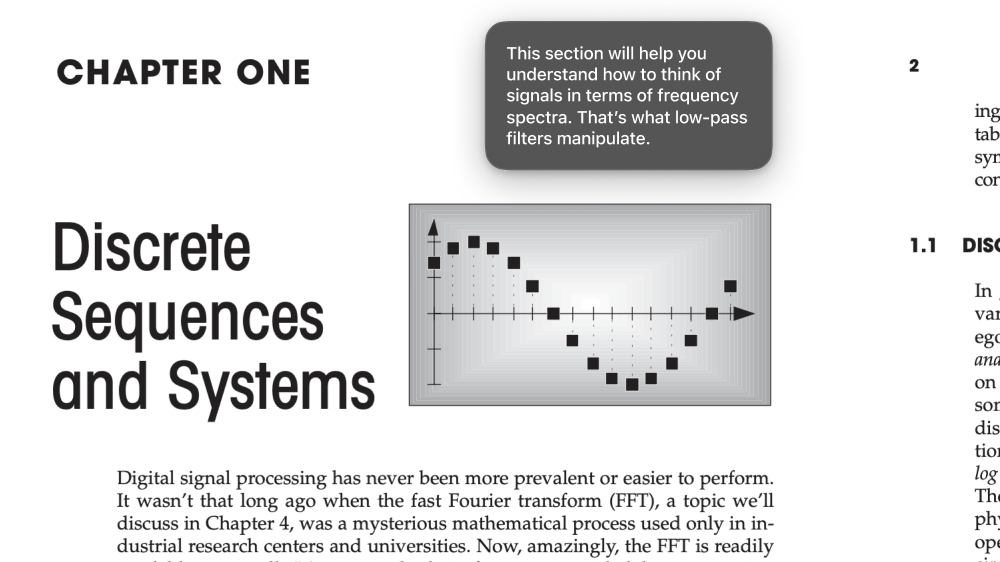 当 Sam 深入学习这本书时,他会发现每个章节的开头和内容中都有 AI 的注释,这些注释将材料与 Sam 的背景、项目和目标结合起来。例如,「这一章节将帮助你理解如何从频谱的角度看待信号。这正是低通滤波器所处理的内容。」Sam 虽然暂时离开了他的项目,进入了一个更传统的学习环境,但这并不意味着他的学习体验会与真正的实践脱节。