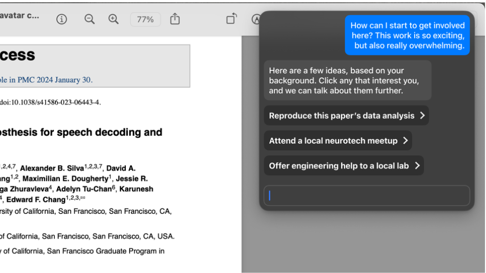 除了连接这两个领域,我们还能加强它们各自的力量。我们的 AI 为 Sam 提供了「全身心投入」新兴趣的可行方法,并帮助 Sam 建立与实践社区的联系。