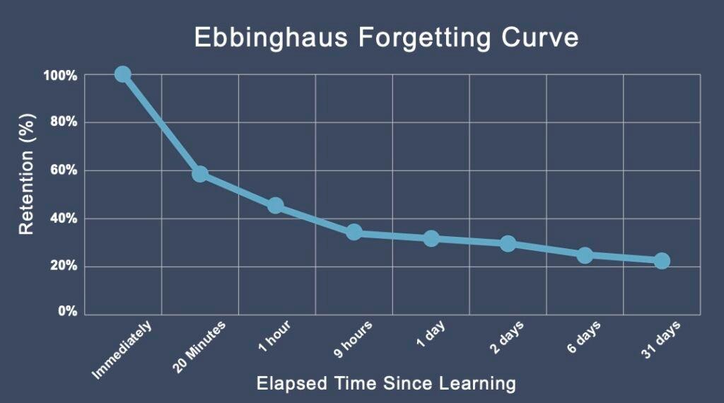 下图是著名的艾宾浩斯遗忘曲线: