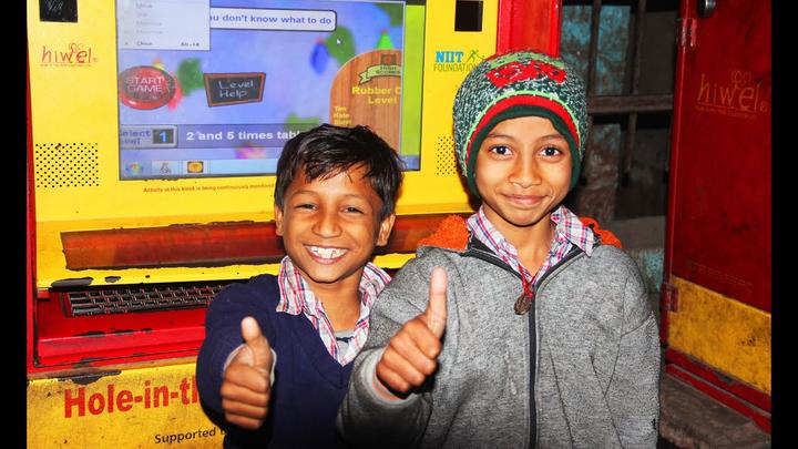 那天,Mitra 打开了一台他安装在 NIIT 大楼外墙上的电脑。这堵墙正对着新德里最大贫民窟,那里的孩子大多不上学,基本都是文盲,从未见过电脑。他安装了电脑,放在那,告诉孩子们可以玩,然后用摄像机监控周围的活动。