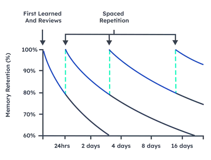 Anki 之类的间隔重复应用有遗忘曲线[1],这是一个模型,即记忆内容会在一定时间后自然遗忘,直到你再次重复,之后它们会再次被遗忘(速度减缓),依此类推,第 n 次重复后,你将记住它很多年甚至一辈子。