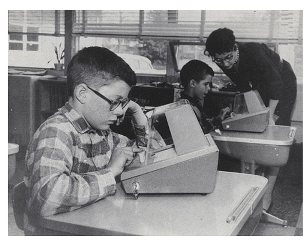 话说回来,过去的科技倡导者也曾认为他们生活在个性化学习的时代。让我们回顾一下 1965 年对一个采用「个性指导教学」项目的课堂描述:
